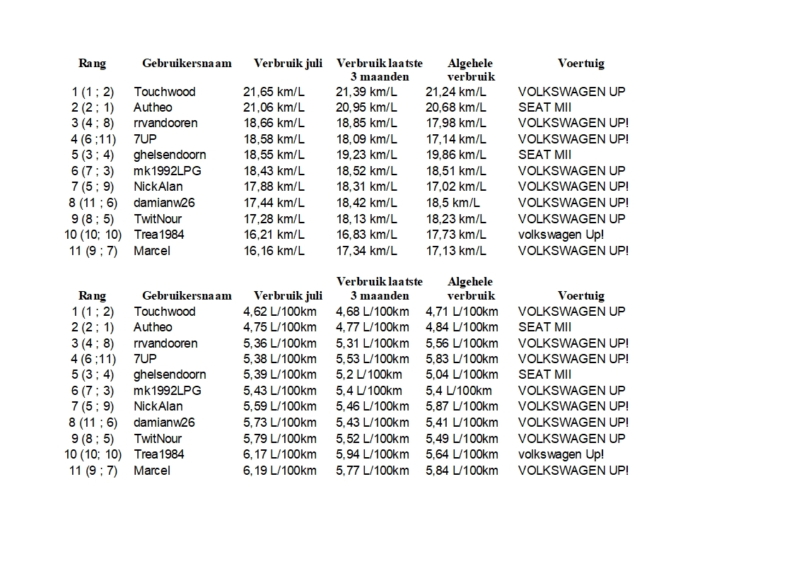 Heeft iedereen z'n tankbeurten weer ingevoerd? Morgen wordt het overzicht voor juli weer gemaakt.