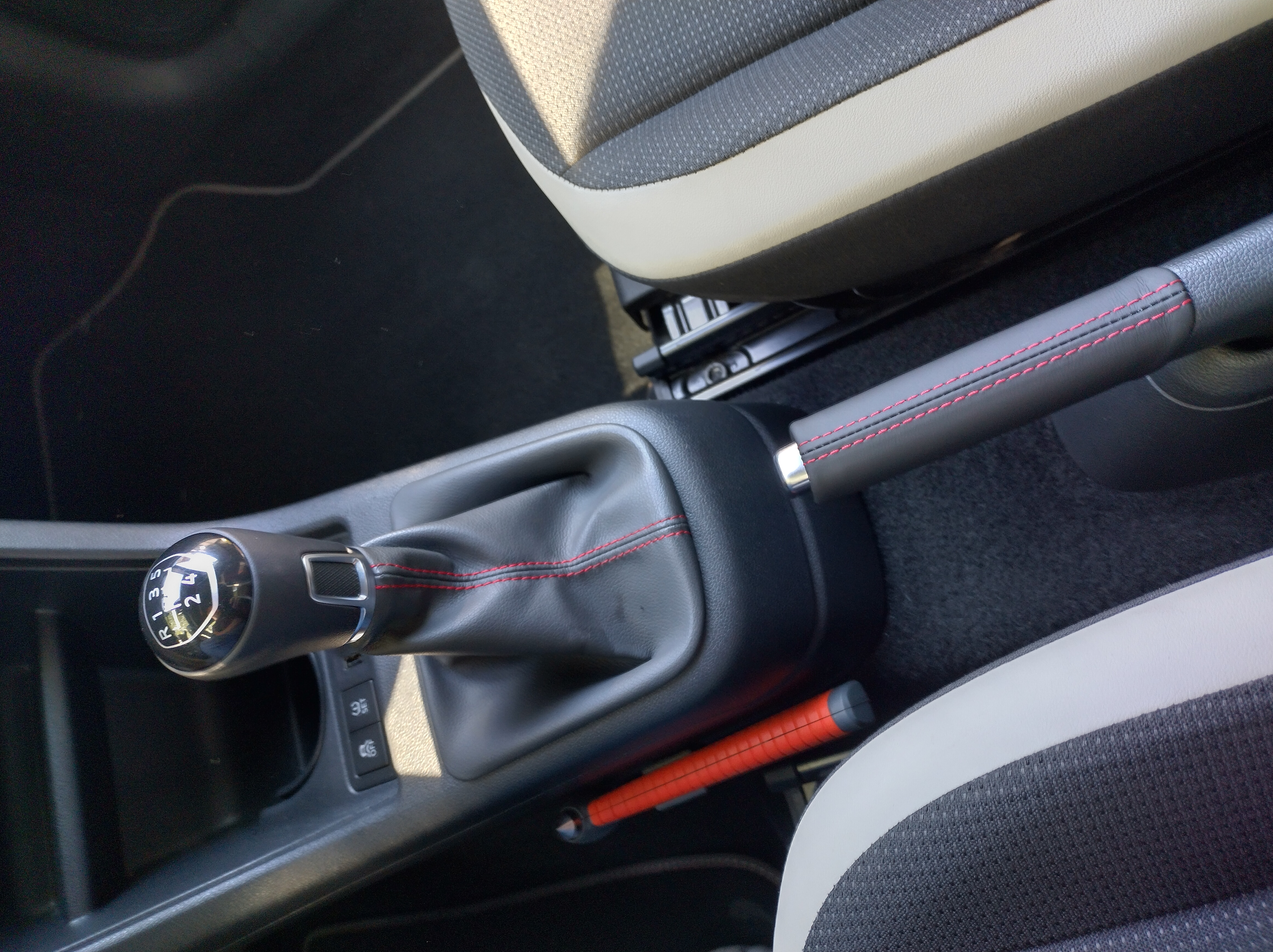 De pook hoes is van een Seat mii fr-line maar ik heb me eigen pook overgezet om dat anders het schakelpatroon niet zou kloppen.