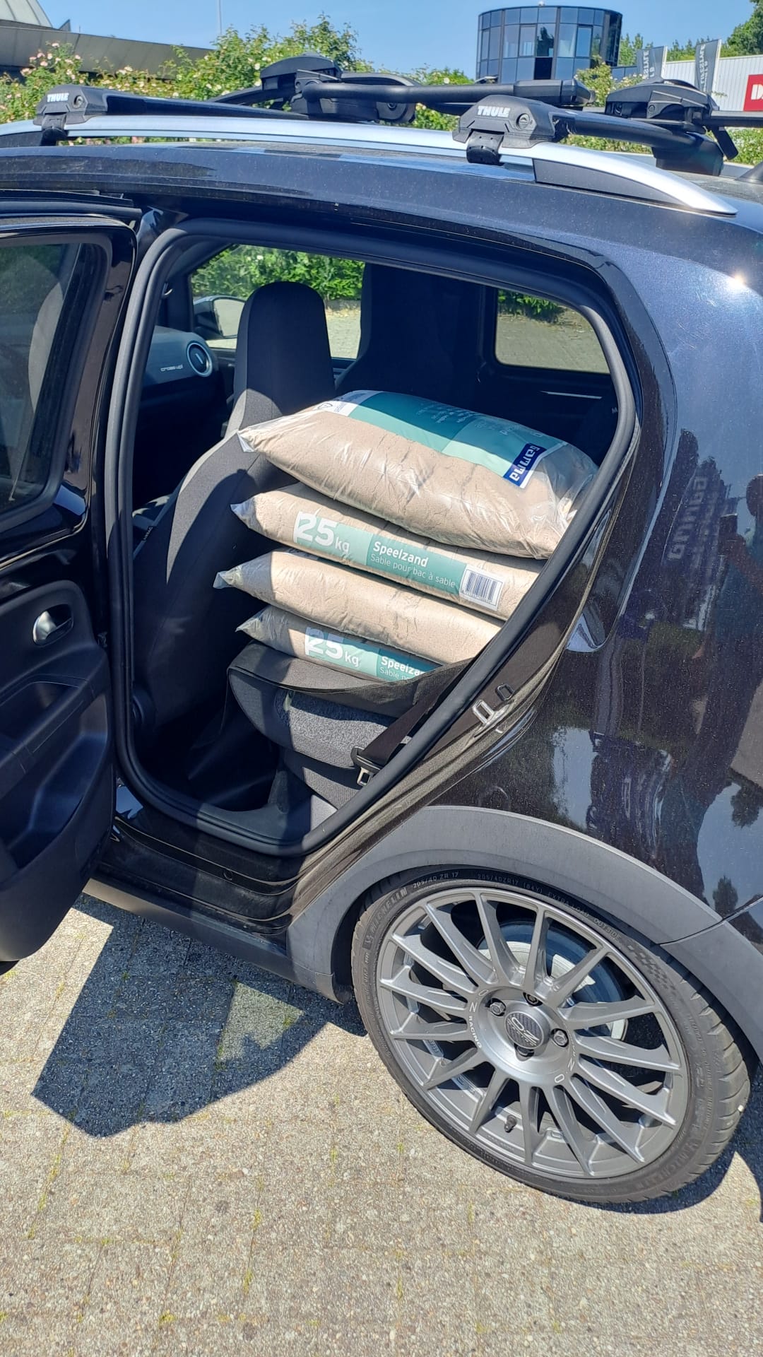 Van fiets op het dak. Tot zand halen voor de zandbak. Door dat hij zo fijn bevalt ook besloten om hem nog iets meer naar het zin te maken.