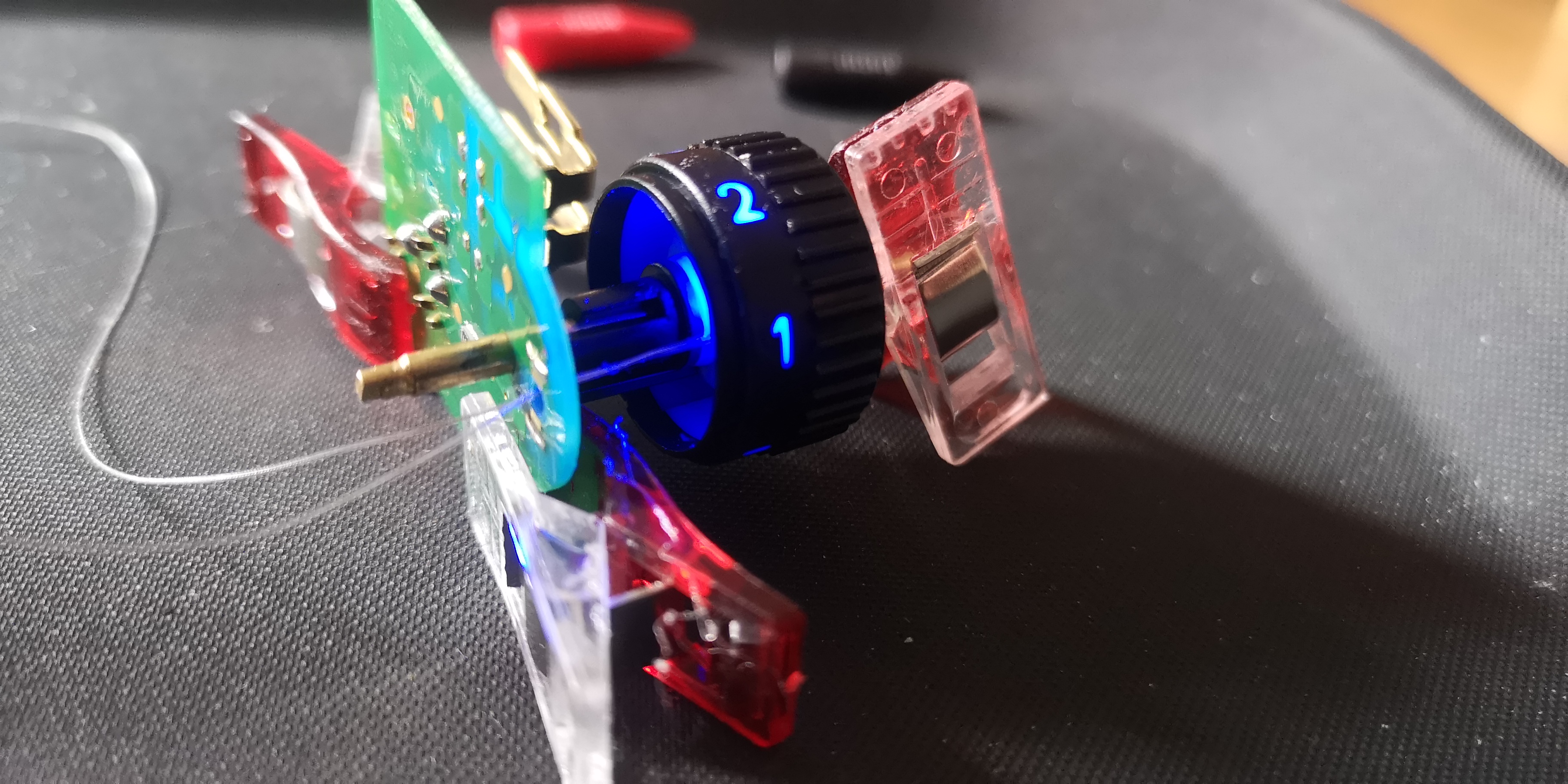 Ik ga ook voor rood. Laat ik duidelijk zijn dat ik behoorlijk aan het experimenteren ben, om later (en niet alleen voor mijzelf) een redelijk makkelijk te monteren verlichte raamschakelaars te kunnen monteren in onze vaglings.