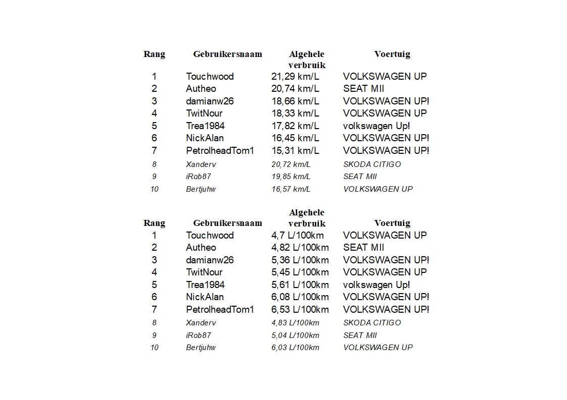 En zo aan het eind van het jaar is het ook mooi om te zien wie over het hele jaar genomen het zuinigst heeft gereden.