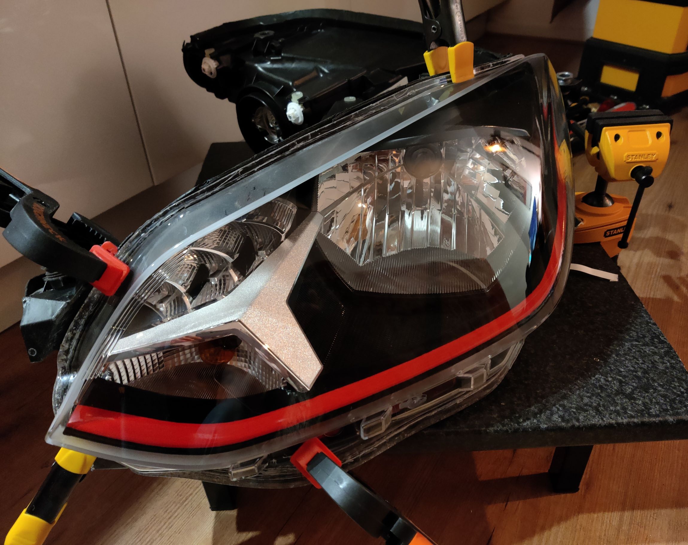 - In de tussentijd ben ik verder gegaan met het 'koplampen-project' wat ik eindelijk heb kunnen afronden. Voorlopig laat ik het even zo , maar ik denk dat ik met de tijd nog meer delen 'zwart' ga lakken. Ik weet nu hoe ik het beter/sneller aan kan pakken en heb meerdere koplampen in huis dus wellicht dat ik een 2e extra set maak en in totaal 3 sets zal hebben ( 1 set origineel van de auto onaangepast , 2 sets wel aangepast). Ik heb nog gekeken voor een Bi-Xenon set via RetroFit , maar iets in mij hield het toch tegen om zo een setje gelijk in te bouwen. Maar ik heb er dan ook geen spijt van dat ik het niet heb gedaan. Er komen nog H4 LED lampen in , ipv de huidige Philips WhiteVision.