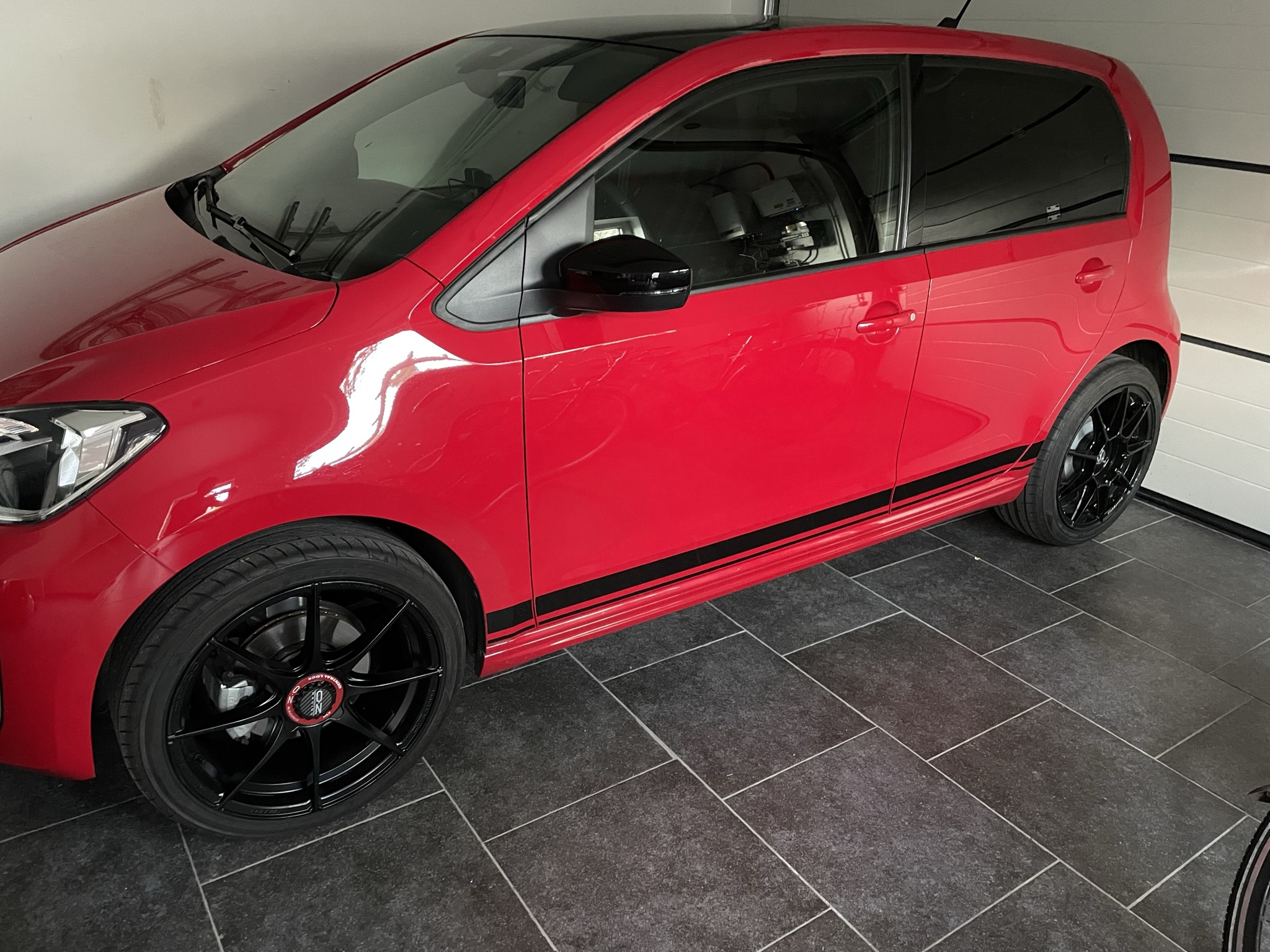 Tom heeft een KW set onder zijn E-Up.