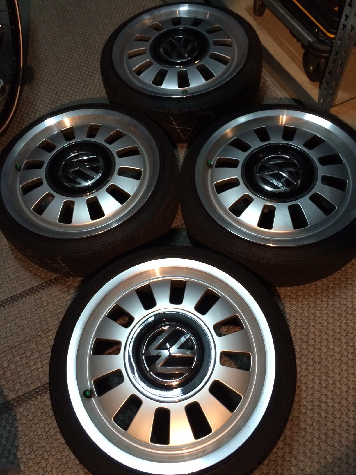Wielen zijn direct van een nieuwe auto afgemonteerd, de banden zijn om een setje Upsilons gegaan, die zitten er dus niet bij.