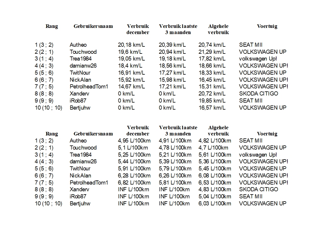 En zo aan het eind van het jaar is het ook mooi om te zien wie over het hele jaar genomen het zuinigst heeft gereden.