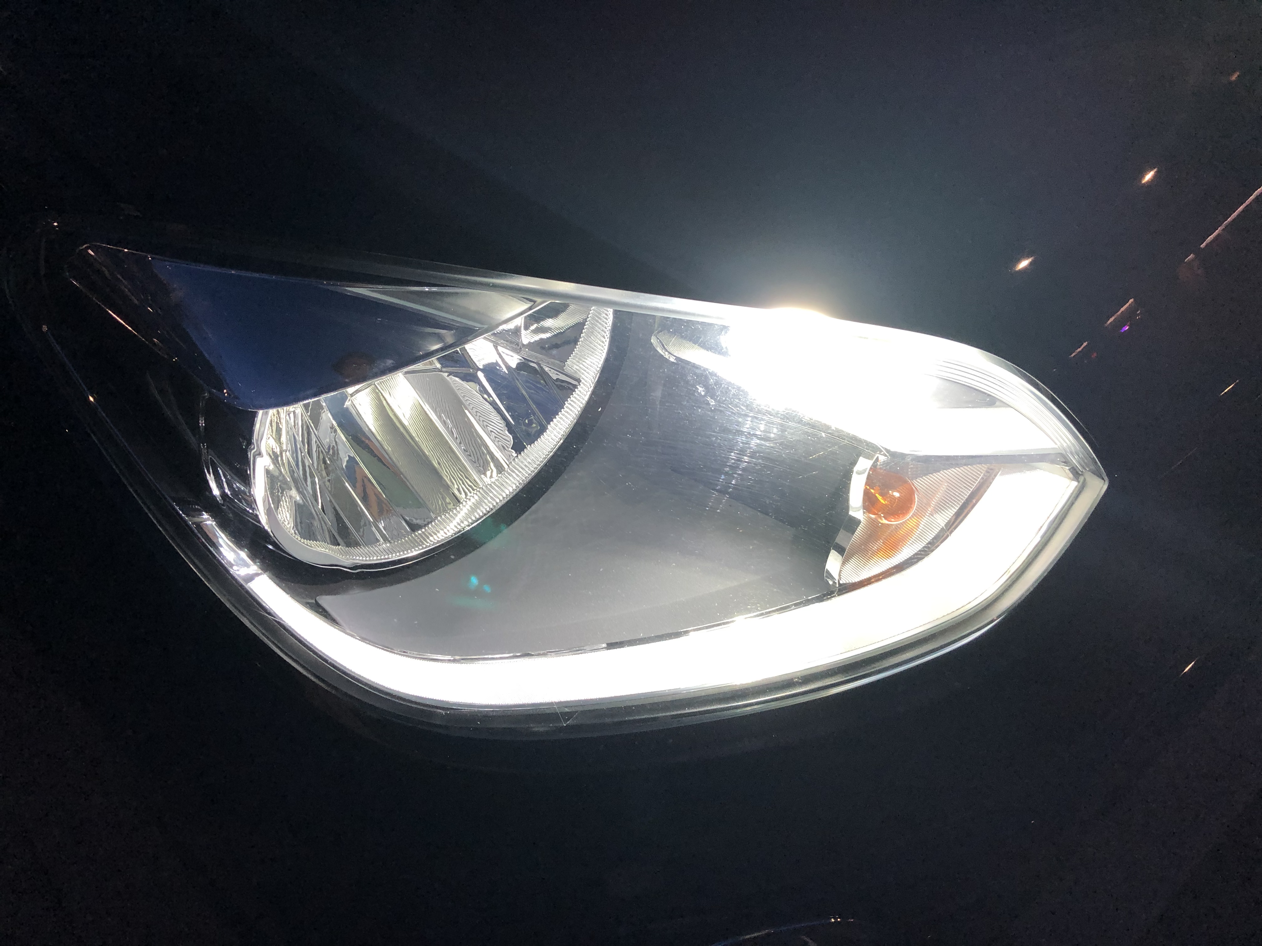Ik ben maar even naar de dealer gereden ze hebben het glaasje even opengemaakt. je moet een heel dun maar stevig spateltje hebben. Bij mij was een bankpas te flexibel. Ik durfde het ook niet te forceren. Het is nog niet donker geweest sindsdien maar ben tevreden met de LED lampjes.