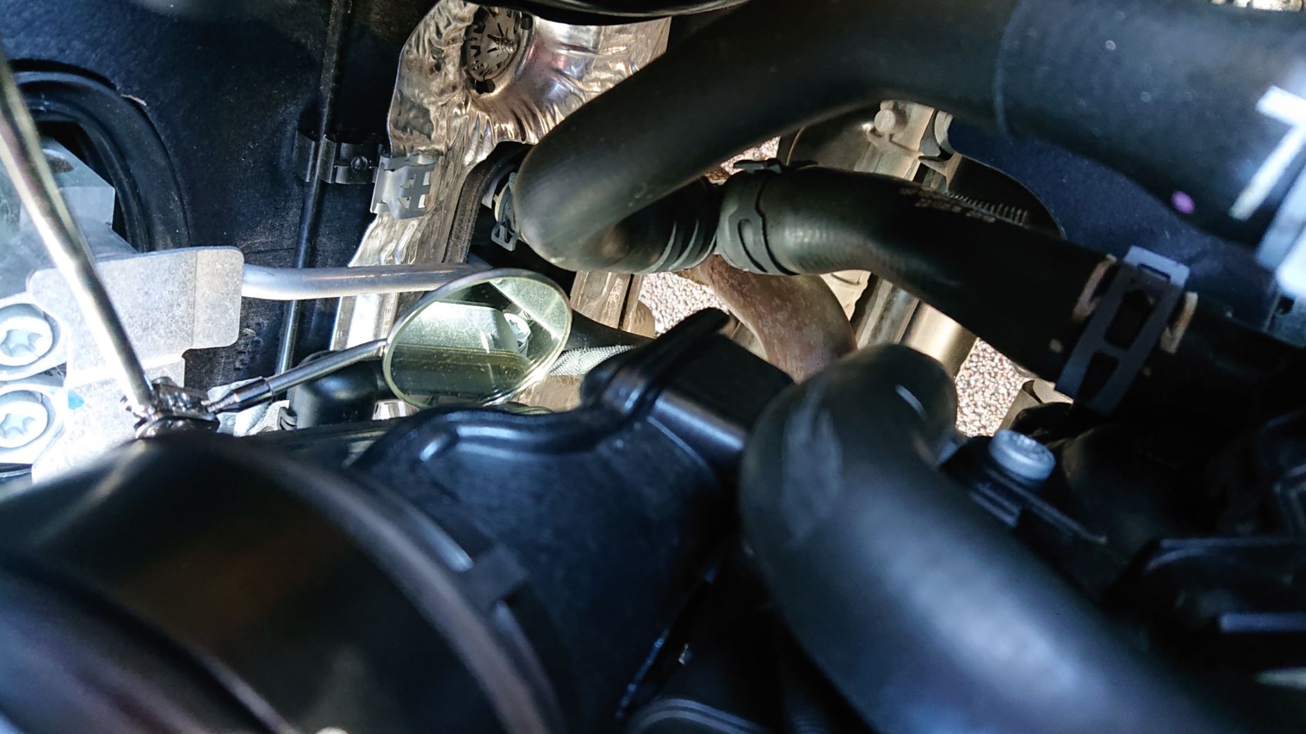 Dan over naar de montage. Wat een ongelooflijke rotklus. Echt niet te doen. De handleiding geeft aan dat het een klus is van 15 minuten, dat is echt totale onzin. Onmogelijk. Het duurde erg lang voordat ik de bout los had, daarbij moet ik eerlijkheidshalve vermelden dat als je precies het juiste stukje gereedschap hebt het wellicht net wat sneller kan gaan, toen het originele deel eindelijk open was moest ik deze echter nog uit de motorruimte zien te krijgen, dat koste ook zeker 20 minuten, ook omdat ik bang was iets kapot te maken. En vervolgens de nieuwe turbo elbow plaatsen. Dat ging allemaal vrij voorspoedig. Dus dat viel mee. Er is gewoon wat meer ruimte om de de nieuwe elbow dus dat maakte het allemaal een stuk makkelijker.