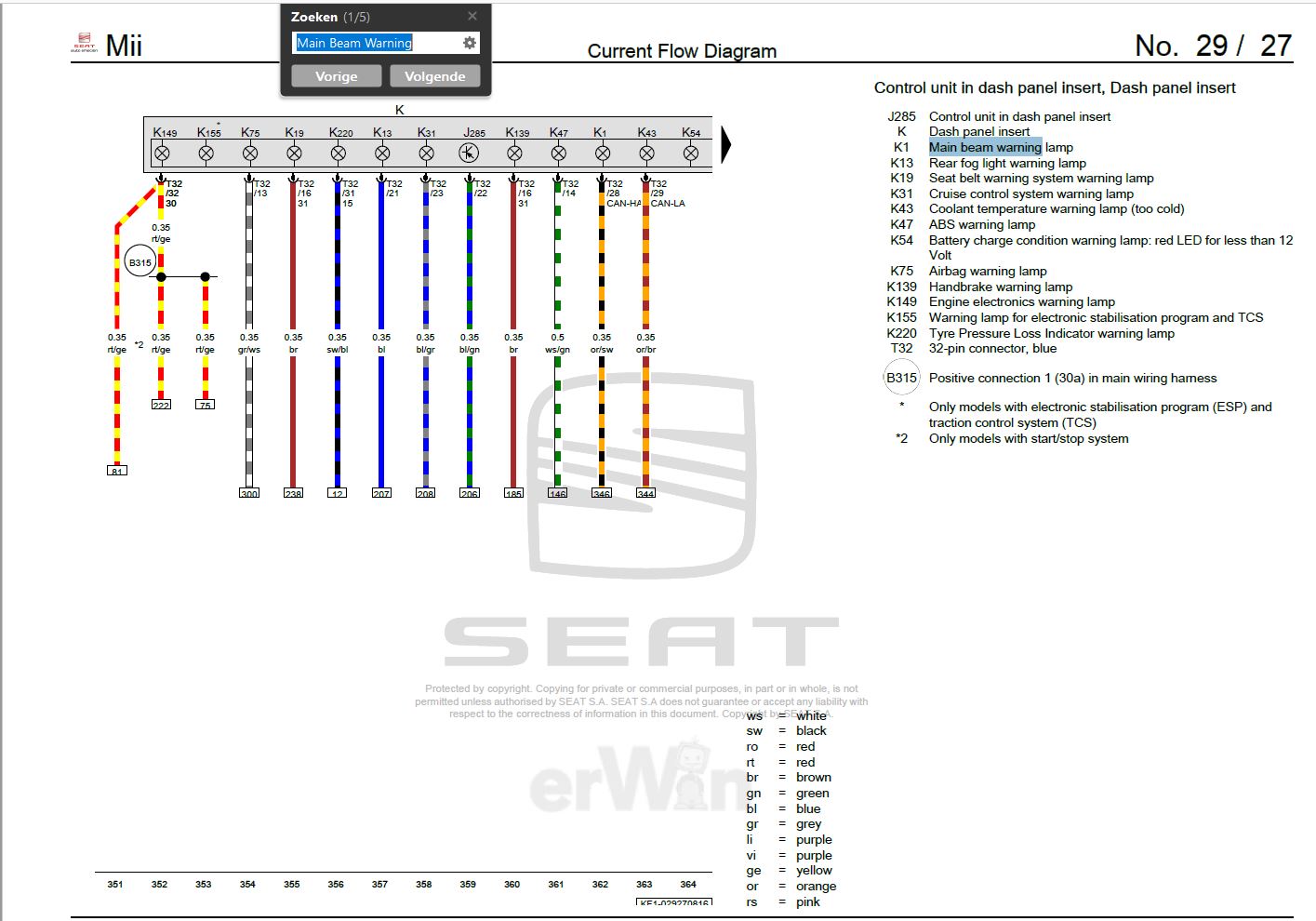 Daar vind ik helemaal geen warning light van terug in de schema's.